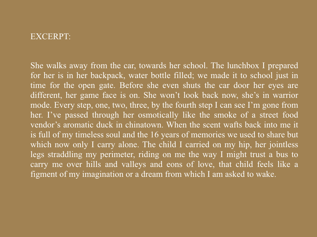 The seismic shift a woman underwent in her first 25 years of motherhood, told through the scope of the otherworldly, infinite love found in the minutest detail of a daughter’s first curl, as well as in the unfathomable highs and lows.